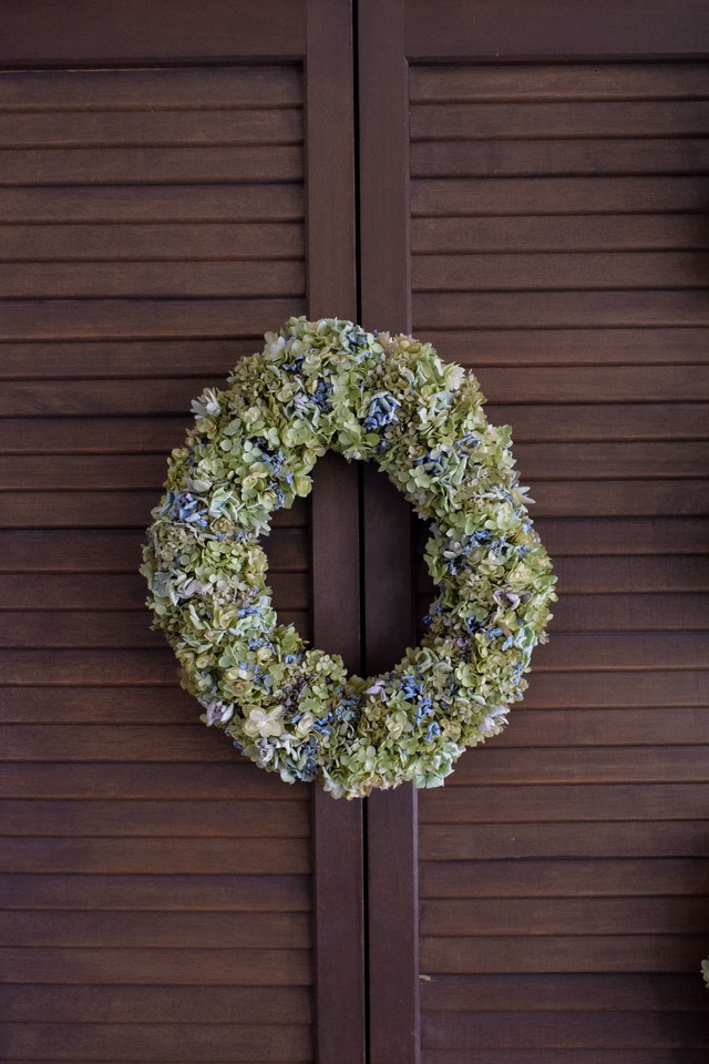 紫陽花のリース・F neriのお庭と素敵なお庭をお持ちのご近所さん家で採れたアナベルとカシワバアジサイを贅沢に使い、爽やかなみどりのリースを仕立てました。 11点の展開がありますが、アナベルカシワバアジサイをベースにポイントでさまざまな種類の秋色紫陽花やneriのお庭の植物たちを入れました。 初夏の風と光を感じるような 紫陽花のリース ぜひお楽しみいただけたらうれしいです。 ----- 【サイズ】約 直径18cm 【使用花材】アナベル・カシワバアジサイ・秋色紫陽花(3種類) ----- 《注意点》 ○自然の植物ですので、どうしても段々と色が変化していきますが、その変化もお楽しみいただけたらと思います。 風通しが良く直射日光の当たらない場所に飾っていただくと長くお楽しみいただけます。 ○丁寧に梱包いたしますが、ドライフラワーの特性上、多少の葉落ちなどご了承くださいますようお願い申し上げます。 ○ご到着時、破損などがございましたらご対応させて頂きますのでお受取から2日以内にご連絡をお願い致します。 ○ご購入後のお客様ご都合による返品、キャンセルは承っておりませんので予めご了承願います。