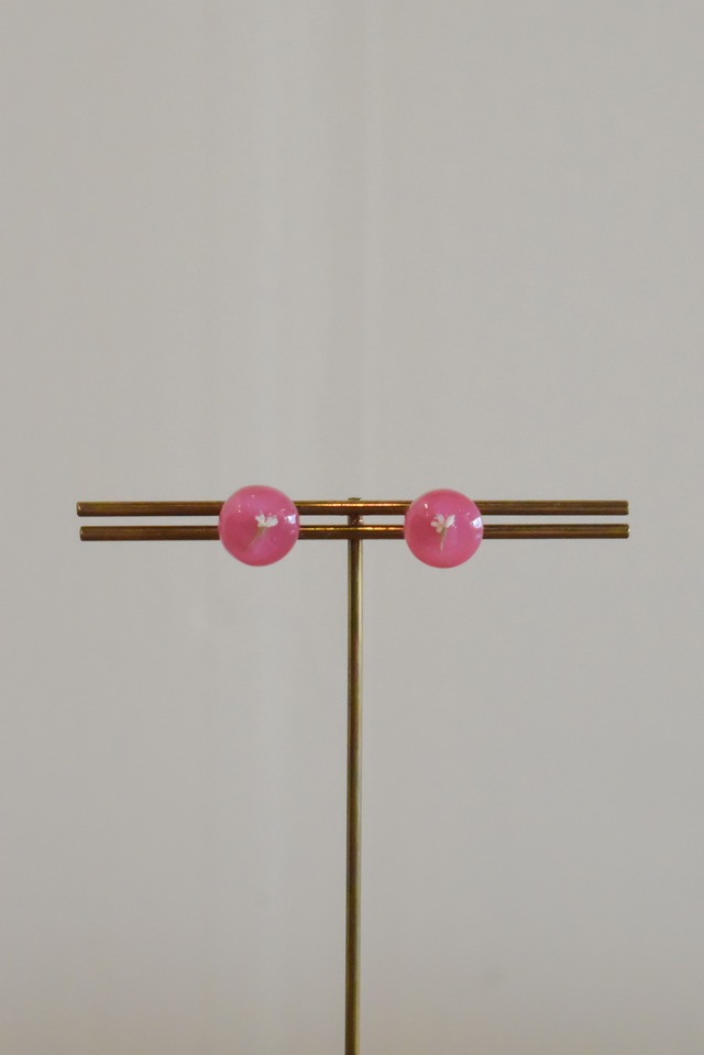 【 PEOPLEコラボアクセサリー 】ピンク・まる 7/5.6に行ったPOPUP『 雨とみちくさ』にて、 会場である長野市桜枝町のPEOPLEさんとの コラボとして制作したアクセサリー。 PEOPLEさんらしいポップで親しみやすいカラーとフォルムに、 atelier neriのやわらかな印象のちいさなお花たちを加えて制作いたしました。 小ぶりなサイズで日常使いにもぴったりです◎ ----- 【 サイズ 】約 直径1.1cm 【 使用花材 】レースフラワー 【 金具部分の素材 】 ●ピアス… キャッチ:真鍮 その他:ステンレス ●イヤリング…真鍮 ●樹脂ピアス・イヤリング…樹脂 ----- 《注意点》 ○レジンを使用しております。アレルギーのある方はお控えください。 ○ご注文後のキャンセル、返品はお受け出来ません。 ○このアクセサリーは、レジン(樹脂)の中に本物の植物を閉じ込めたものです。 自然の植物ですので、どうしても段々と色が変化していきますが、その変化もお楽しみいただけたらと思います。 直射日光を避けて保管していただきますとより長くお楽しみいただけます。 ○皮脂などにより表面が曇った場合は、メガネクリーナーなどで優しく拭いてあげてください。
