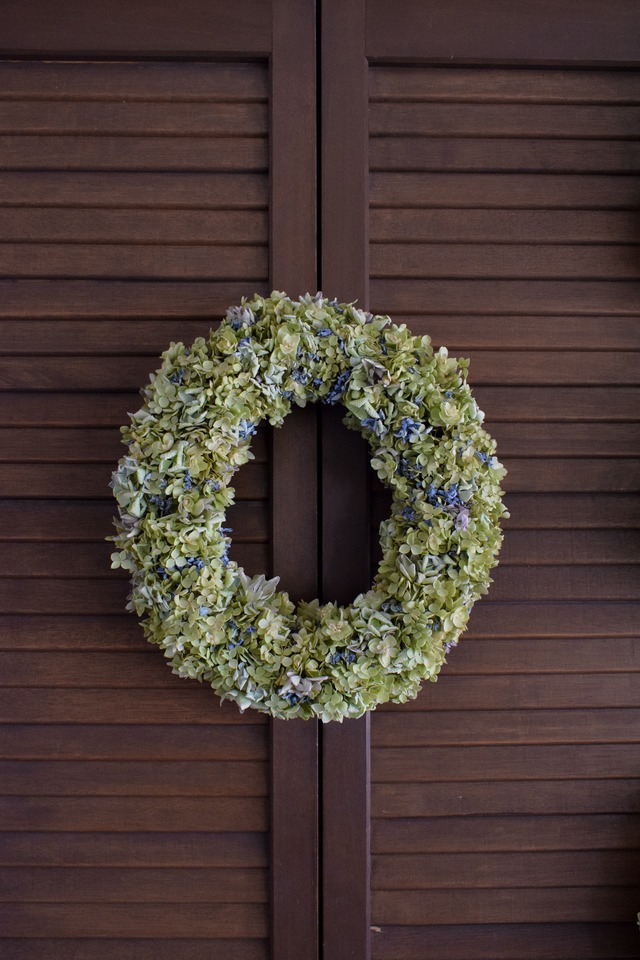 紫陽花のリース・D neriのお庭と素敵なお庭をお持ちのご近所さん家で採れたアナベルとカシワバアジサイを贅沢に使い、爽やかなみどりのリースを仕立てました。 11点の展開がありますが、アナベルカシワバアジサイをベースにポイントでさまざまな種類の秋色紫陽花やneriのお庭の植物たちを入れました。 初夏の風と光を感じるような 紫陽花のリース ぜひお楽しみいただけたらうれしいです。 ----- 【サイズ】約 直径20cm 【使用花材】アナベル・カシワバアジサイ・秋色紫陽花(3種類) ----- 《注意点》 ○自然の植物ですので、どうしても段々と色が変化していきますが、その変化もお楽しみいただけたらと思います。 風通しが良く直射日光の当たらない場所に飾っていただくと長くお楽しみいただけます。 ○丁寧に梱包いたしますが、ドライフラワーの特性上、多少の葉落ちなどご了承くださいますようお願い申し上げます。 ○ご到着時、破損などがございましたらご対応させて頂きますのでお受取から2日以内にご連絡をお願い致します。 ○ご購入後のお客様ご都合による返品、キャンセルは承っておりませんので予めご了承願います。